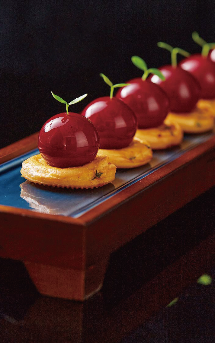 招牌菜樱桃鹅肝创意与美味并存,一直食客们的必点产品。食用时,可以用勺子将鹅肝轻轻压扁,配以葱油饼一起品尝,一口入嘴,绵密的鹅肝、甜美的酱汁混合着红酒的香气,瞬时攻占舌腔,回味无穷。