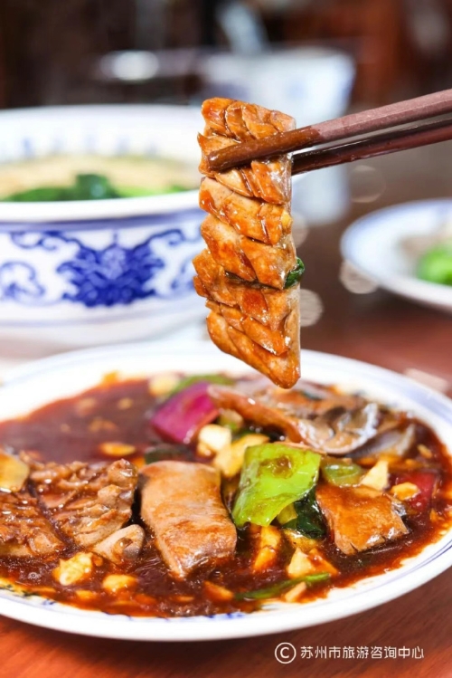 想吃得简单些的话,一碗苏式汤面搭配爆鱼、焖肉、鳝丝、虾仁等各种经典苏式面浇头,或者鱼片、三鲜、腰花、猪肝等现炒浇头,也可以吃得很满足了。