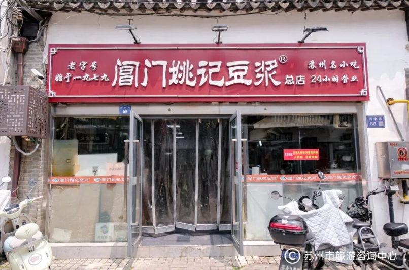 24小时灯火通明的阊门姚记豆浆是苏州人喜爱的早餐店,同时也是夜宵爱好者的福音。咸豆浆、豆腐脑、油条、粢饭糕都是店内特色,每一口都是记忆中的味道。