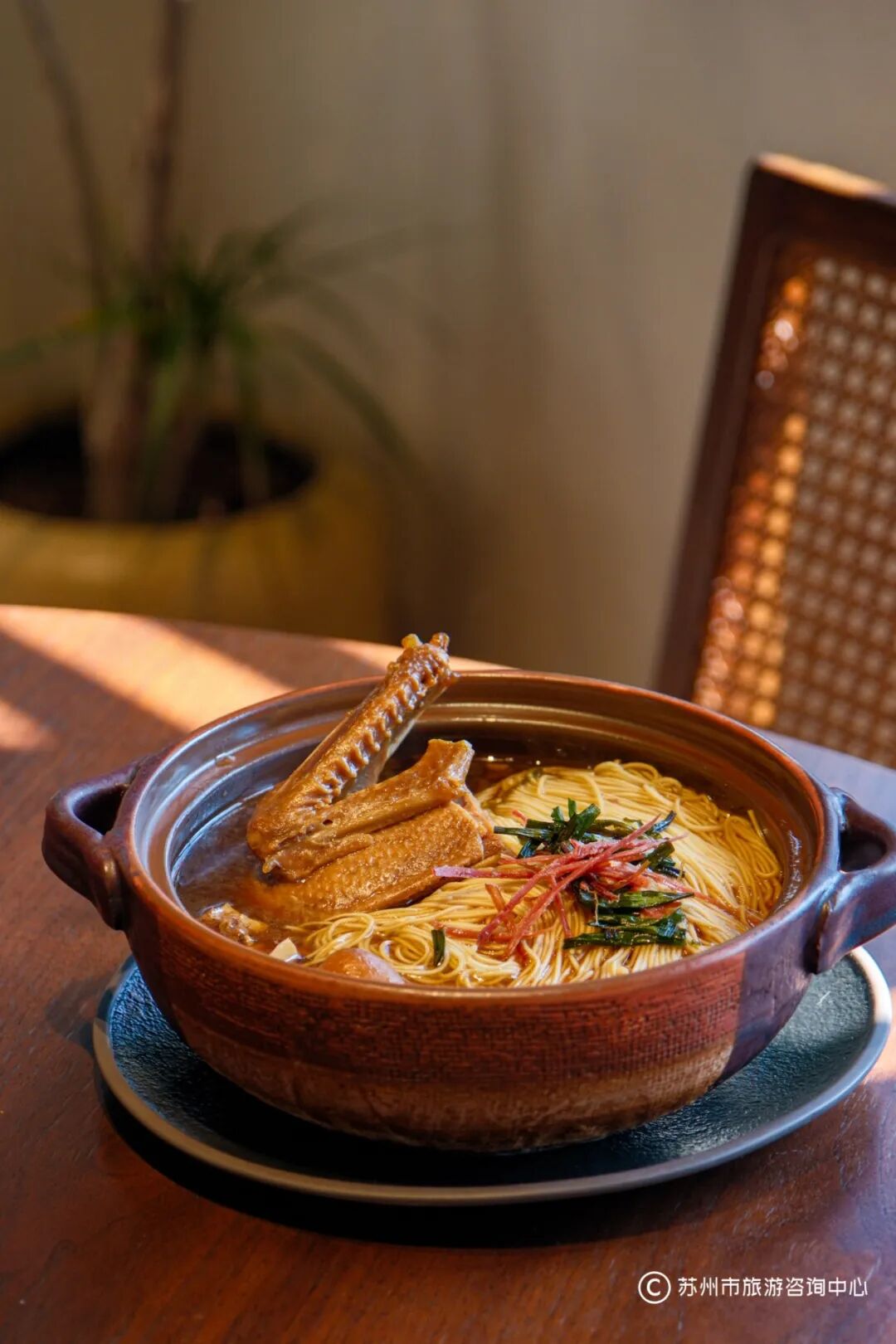 将煮好的苏式细面滑入这锅精华之中,端上桌的砂锅冒着腾腾热气,面条吸饱了浓郁的汤汁,极其入味。这一锅温暖的滋味,正是抵御江南秋冬湿寒的、最妥帖的慰藉。