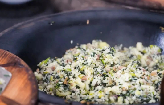冬至即将来临,苏州人的饭桌上定少不了一碗咸肉菜饭。霜打过的苏州青甜糯非常,与咸肉丁、新米一同焖煮。揭开锅盖的瞬间,热气裹挟着咸香扑鼻而来,米饭油润发亮,一口香迷糊~