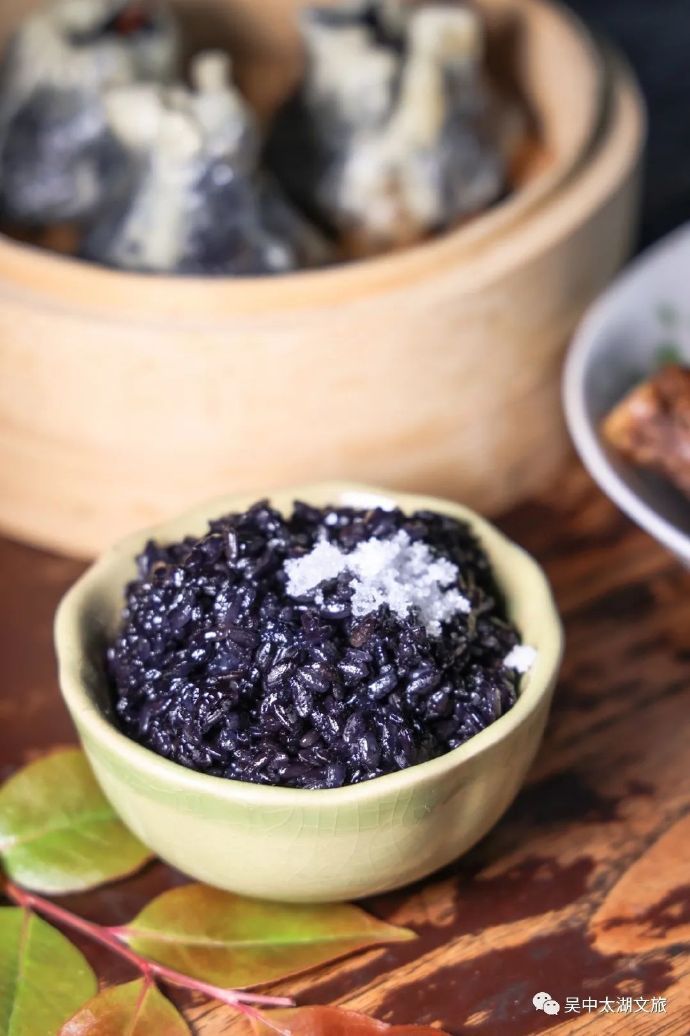 乌米饭是苏州人常吃的美食,乌米粗看和黑米相似,实则大不相同。乌米的胚料是吴中特产太湖珍珠糯,因在乌饭树叶的汁液中反复浸泡,从而呈现出了黑色。在木渎、藏书、光福、东山、西山等山地均长有乌饭树,即便冬日也能吃到热气腾腾的乌米饭。蒸好的乌米饭,粒粒乌黑饱满,清香馥郁,米饭的糯混合着乌饭树的香,在寒风里暖透人心,一口便尝尽山野四季的温柔~