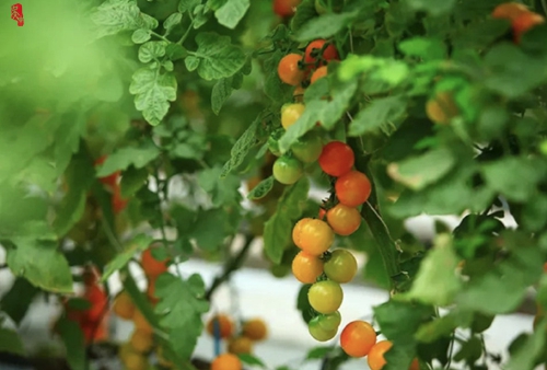 从草莓大棚出来,相邻的番茄棚里又是另一番热闹景象。红的、橙的小番茄错落垂挂在枝头像一个个小灯笼,看着就让人满心欢喜。熟透的小番茄皮薄汁多,吃起来清爽解腻!