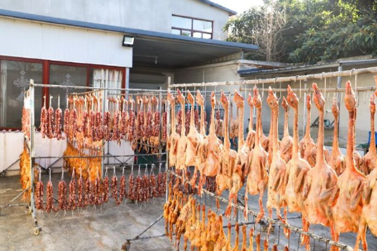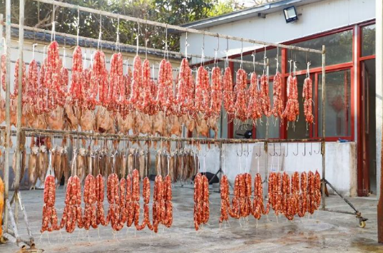 在太湖西山岛,冬天的仪式感是从一串腊味挂上屋檐开始的。每到冬日,村民们便会挑选新鲜的本地猪肉、鲜鱼,还有散养的鸡鸭,均匀涂抹上盐巴与香料,静置腌制后齐刷刷晾挂在自家院落的竹竿上。晴日里,阳光洒在油润的腊味上,油脂缓缓渗出,在空气中弥漫开浓郁的咸香。风一吹,这股香气便钻进街巷的每一个角落,也钻进路人的鼻尖。