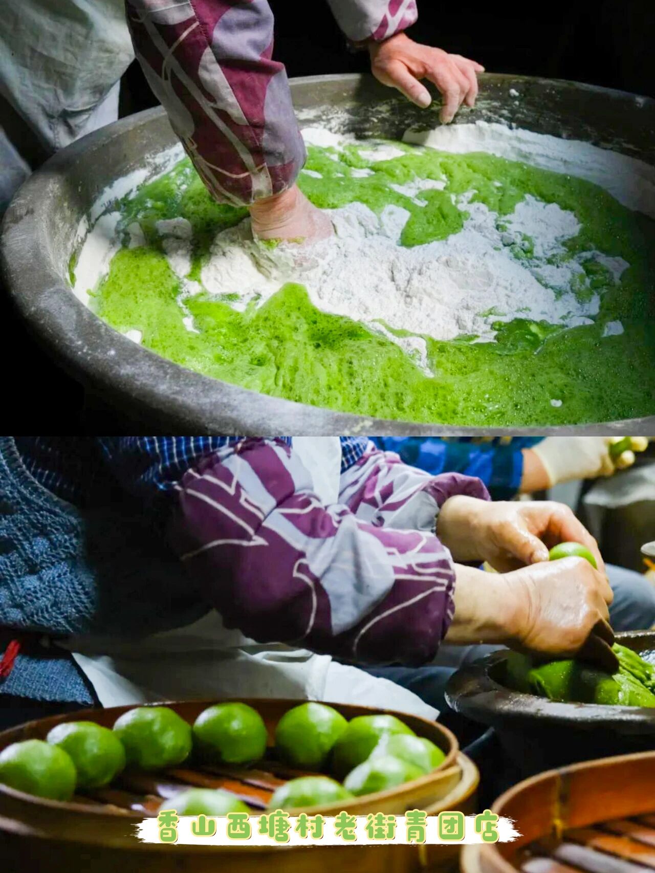 青团的青色,是艾草与浆麦草染就的,捣烂为汁,和入粉中,揉搓之间,雪白粉团渐染春色,化作盈盈碧玉。裹进豆沙的绵密、肉松的咸香、黑芝麻的流心,上笼蒸制,水汽氤氲,香气透过蒸笼缝隙悄然逸散。出笼后刷上一层熟油,顿时葱绿如碧,油亮似翡,这便是春日里最动人的模样~来吴中,让一枚碧玉团子带你品尽江南春色吧!